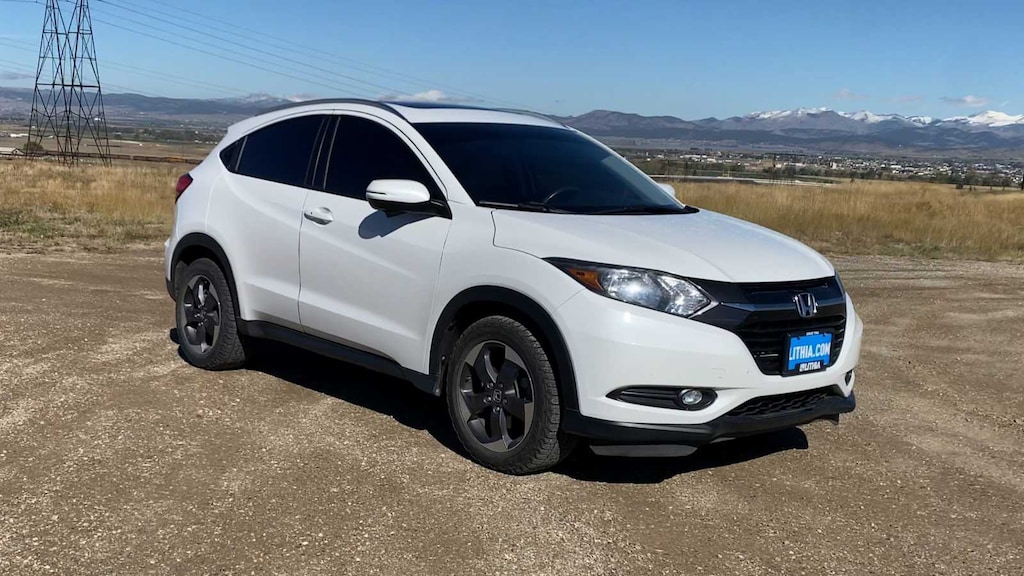 Lithia Chrysler Dodge Jeep RAM FIAT of Helena is pleased to offer this White 2018 Honda HR-V EX-L for purchase, this vehicle is well equipped with many features including: CPOV GO Certified, Navigation System, 4-Wheel Disc Brakes, 5.436 Axle Ratio, 6 Speakers, ABS brakes, Air Conditioning, Alloy wheels, AM/FM radio: SiriusXM, Auto-dimming Rear-View mirror, Automatic temperature control, Brake assist, Bumpers: body-color, CD player, Driver door bin, Driver vanity mirror, Dual front impact airbags, Dual front side impact airbags, Electronic Stability Control, Exterior Parking Camera Rear, Front anti-roll bar, Front Bucket Seats, Front Center Armrest, Front fog lights, Front reading lights, Front wheel independent suspension, Fully automatic headlights, Heated door mirrors, Heated Front Bucket Seats, Heated front seats, Honda Satellite-Linked Navigation System, Illuminated entry, Leather Seat Trim, Leather Shift Knob, Low tire pressure warning, Occupant sensing airbag, Outside temperature display, Overhead airbag, Panic alarm, Passenger door bin, Passenger vanity mirror, Power door mirrors, Power moonroof, Power steering, Power windows, Radio data system, Radio: AM/FM/HD Audio System (180 Watts), Rear anti-roll bar, Rear seat center armrest, Rear window defroster, Rear window wiper, Remote keyless entry, Roof rack: rails only, Security system, SiriusXM Radio, Speed control, Split folding rear seat, Spoiler, Steering wheel mounted audio controls, Tachometer, Telescoping steering wheel, Tilt steering wheel, Traction control, Trip computer, Turn signal indicator mirrors, Variably intermittent wipers, and Wheels: 17 Machine-Finished Alloy w/Black Insert. Recent Arrival! Certified. White 2018 Honda HR-V EX-L w/Navigation EX-L w/Navigation AWD CVT 1.8L I4 SOHC 16V i-VTEC