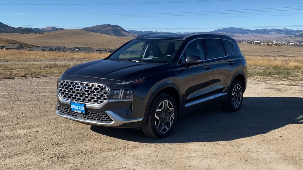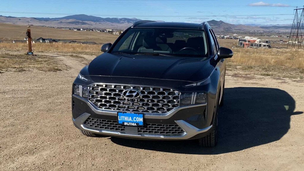 Lithia Chrysler Dodge Jeep RAM FIAT of Helena is pleased to offer this Portofino Gray 2023 Hyundai Santa Fe Limited for purchase, this vehicle is well equipped with many features including: Option Group 01, CPOV GO Certified, AWD, Gray Leather, Navigation System, 12 Speakers, 4-Wheel Disc Brakes, ABS brakes, Air Conditioning, Alloy wheels, AM/FM radio: SiriusXM, Apple CarPlay & Android Auto, Auto High-beam Headlights, Auto-dimming Rear-View mirror, Automatic temperature control, Axle Ratio: 3.316, Brake assist, Bumpers: body-color, Delay-off headlights, Driver door bin, Driver vanity mirror, Dual front impact airbags, Dual front side impact airbags, Electronic Stability Control, Emergency communication system, Exterior Parking Camera Rear, Four wheel independent suspension, Front anti-roll bar, Front Bucket Seats, Front Center Armrest, Front dual zone A/C, Front reading lights, Fully automatic headlights, Garage door transmitter: HomeLink, harman/kardonî Speakers, Heated & Ventilated Front Bucket Seats, Heated door mirrors, Heated front seats, Heated rear seats, Heated steering wheel, Illuminated entry, Leather Seat Trim, Leather steering wheel, Low tire pressure warning, Memory seat, Occupant sensing airbag, Outside temperature display, Overhead airbag, Overhead console, Panic alarm, Passenger door bin, Passenger vanity mirror, Power door mirrors, Power driver seat, Power Liftgate, Power moonroof, Power passenger seat, Power steering, Power windows, Radio: AM/FM Harman Kardon Display Audio, Rain sensing wipers, Rear anti-roll bar, Rear seat center armrest, Rear window defroster, Rear window wiper, Remote keyless entry, Security system, Speed control, Speed-sensing steering, Split folding rear seat, Spoiler, Steering wheel mounted audio controls, Tachometer, Telescoping steering wheel, Tilt steering wheel, Traction control, Trip computer, Turn signal indicator mirrors, Variably intermittent wipers, Ventilated front seats, and Wheels: 19 x 7.5J Alloy. Recent Arrival! Certified. CARFAX One-Owner. Clean CARFAX. Portofino Gray 2023 Hyundai Santa Fe Limited Limited AWD Shiftronic 2.5L I4