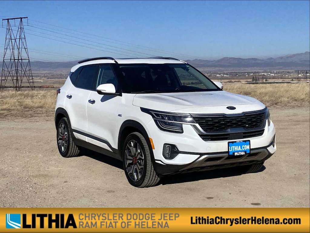 Lithia Chrysler Dodge Jeep RAM FIAT of Helena is pleased to offer this Snow White Pearl 2021 Kia Seltos SX for purchase, this vehicle is well equipped with many features including: SX Sunroof Package (Sunroof), Apple CarPlay & Android Auto, Navigation System, 18 Alloy Wheels, 4-Wheel Disc Brakes, 4.643 Axle Ratio, 8 Speakers, ABS brakes, Air Conditioning, Alloy wheels, AM/FM radio: SiriusXM, Auto-dimming Rear-View mirror, Automatic temperature control, Brake assist, Bumpers: body-color, Carpeted Floor Mats, Delay-off headlights, Driver door bin, Driver vanity mirror, Dual front impact airbags, Dual front side impact airbags, Electronic Stability Control, Emergency communication system, Exterior Parking Camera Rear, Four wheel independent suspension, Front anti-roll bar, Front Bucket Seats, Front Center Armrest, Front fog lights, Front reading lights, Fully automatic headlights, Heated door mirrors, Heated Front Bucket Seats, Heated front seats, Illuminated entry, Leather Seat Trim, Leather Shift Knob, Low tire pressure warning, Occupant sensing airbag, Outside temperature display, Overhead airbag, Overhead console, Panic alarm, Passenger door bin, Passenger vanity mirror, Power door mirrors, Power driver seat, Power steering, Power windows, Radio: AM/FM/MP3 Display Audio, Rear seat center armrest, Rear window defroster, Rear window wiper, Remote keyless entry, Security system, Smart Key w/ Push Button and Remote Start, Speed control, Speed-sensing steering, Split folding rear seat, Spoiler, Steering wheel mounted audio controls, Tachometer, Telescoping steering wheel, Tilt steering wheel, Traction control, Trip computer, Turn signal indicator mirrors, and Variably intermittent wipers. CARFAX One-Owner. Clean CARFAX. Snow White Pearl 2021 Kia Seltos SX SX AWD 7-Speed Automatic I4