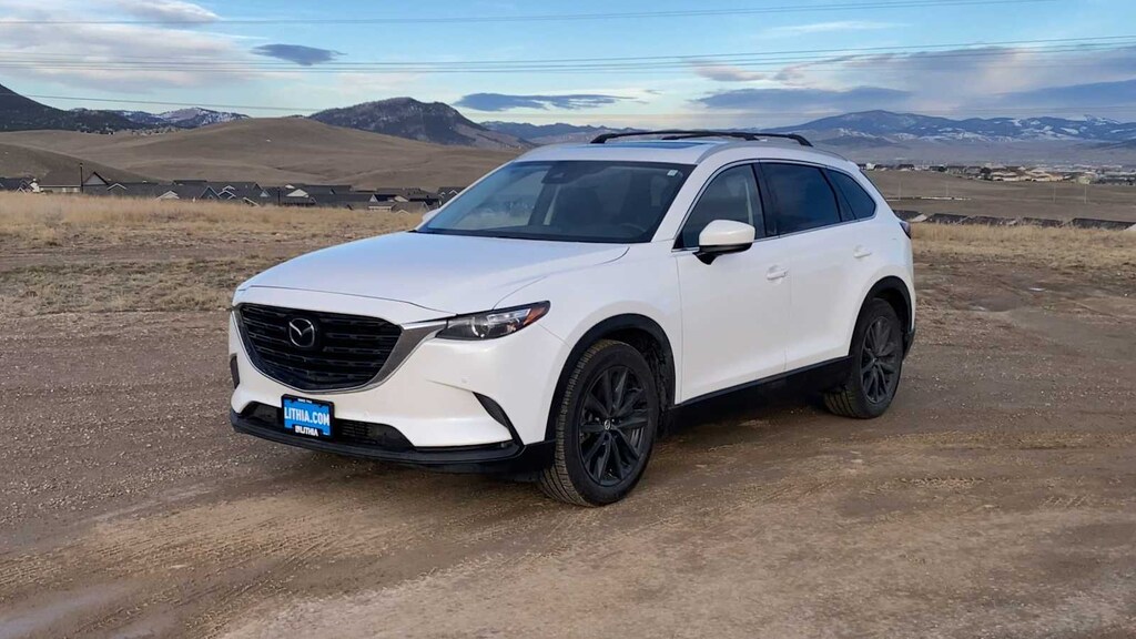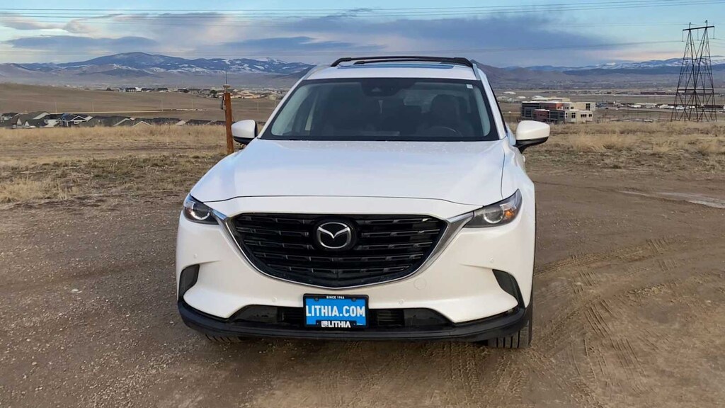 Lithia Chrysler Dodge Jeep RAM FIAT of Helena is pleased to offer this Snowflake White Pearl Mica 2022 Mazda CX-9 Touring Plus for purchase, this vehicle is well equipped with many features including: CPOV GO Certified, AWD, 3rd row seats: bench, AppLink/Apple CarPlay and Android Auto, Exterior Parking Camera Rear, Heated front seats, Leather Seat Trim, Power Liftgate, Power moonroof, Power passenger seat, Towing Receiver Hitch, Ventilated front seats, 4-Wheel Disc Brakes, 4.411 Axle Ratio, 6 Speakers, ABS brakes, Air Conditioning, All-Weather Floor Mats (All 3 Rows) (FLA), Alloy wheels, Auto High-beam Headlights, Auto-dimming Rear-View mirror, Automatic temperature control, Brake assist, Bumpers: body-color, Carpeted Cargo Mat, Compass, Delay-off headlights, Driver door bin, Driver vanity mirror, Dual front impact airbags, Dual front side impact airbags, E911 Automatic Emergency Notification, Electronic Stability Control, Emergency communication system: MAZDA CONNECT, Four wheel independent suspension, Front anti-roll bar, Front Bucket Seats, Front Center Armrest, Front dual zone A/C, Front fog lights, Front reading lights, Fully automatic headlights, Garage door transmitter: HomeLink, Heated door mirrors, Heated/Ventilated Front Bucket Seats, Illuminated Doorsill Trim Plates, Illuminated entry, Infotainment System Voice Command, Leather Shift Knob, Leather steering wheel, Low tire pressure warning, Mazda Connected Services, Memory seat, Occupant sensing airbag, Outside temperature display, Overhead airbag, Overhead console, Pandora Internet Radio Integration, Panic alarm, Passenger door bin, Passenger vanity mirror, Power door mirrors, Power driver seat, Power steering, Power windows, Radio Broadcast Data System Program Information, Radio data system, Radio: AM/FM Sound System, Rain sensing wipers, Rear air conditioning, Rear anti-roll bar, Rear reading lights, Rear seat center armrest, Rear window defroster, Rear window wiper, Remote keyless entry, Roof Rack & Cross Bars, Roof rack: rails only, SMS Text Msg Audio Delivery & Reply, Snowflake White Pearl Mica Paint, Speed control, Speed-sensing steering, Split folding rear seat, Spoiler, Steering wheel mounted audio controls, Tachometer, Telescoping steering wheel, Tilt steering wheel, Traction control, Trip computer, Turn signal indicator mirrors, Variably intermittent wipers, and Wheels: 20 x 8.5J Aluminum Alloy. Recent Arrival! Certified. CARFAX One-Owner. Snowflake White Pearl Mica 2022 Mazda CX-9 Touring Plus Touring Plus AWD 6-Speed Automatic 2.5L 4-Cylinder