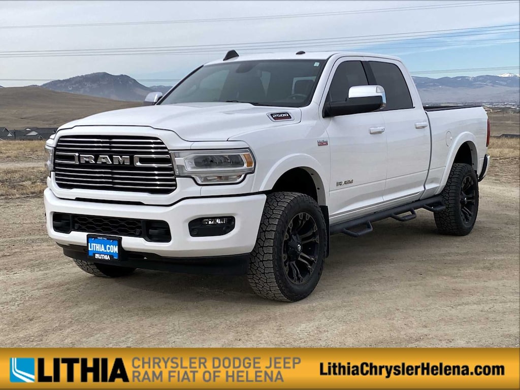Lithia Chrysler Dodge Jeep RAM FIAT of Helena is pleased to offer this Bright White Clearcoat 2020 Ram 2500 Laramie for purchase, this vehicle is well equipped with many features including: Laramie Level 1 Equipment Group (2nd Row In Floor Storage Bins, Auto High Beam Headlamp Control, Blind Spot & Cross Path Detection, Exterior Mirrors w/Memory, Foam Bottle Insert (Door Trim Panel), Mirror-Mounted Aux Reverse Lamps, Power Adjustable Convex Aux Mirrors, Power Adjustable Pedals w/Memory, Power Chrome Tow Mirrors w/Convex Spotter & Memory, Radio/Driver Seat/Mirrors/Pedals Memory, Rain Sensitive Windshield Wipers, Remote Tailgate Release, and Ventilated Front Seats), Protection Group (Tow Hooks), Quick Order Package 2ZH Laramie, Sport Appearance Package (Black Interior Accents, Body Color Door Handles, Body Color Grille Surround, Painted Front Bumper, Painted Rear Bumper, and Sport Decal), 1-Year SiriusXM Guardian Trial, 10 Speakers, 115V Auxiliary Rear Power Outlet, 2 Way Rear Headrest Seat, 3.73 Axle Ratio, 4 Way Front Headrests, 4-Wheel Disc Brakes, 400W Inverter, 5-Year SiriusXM Traffic Service, 5-Year SiriusXM Travel Link Service, 8.4 Touchscreen Display, ABS brakes, Active Noise Control System, Adjustable pedals, Air Conditioning, Alloy wheels, AM/FM radio: SiriusXM, Anti-Spin Differential Rear Axle, Apple CarPlay, Apple CarPlay/Android Auto, Auto-dimming Rear-View mirror, Automatic temperature control, Brake assist, Bumpers: chrome, Compass, CTR Stop Lamp w/Cargo View Camera, Delay-off headlights, Disassociated Touchscreen Display, Driver door bin, Driver vanity mirror, Dual front impact airbags, Dual front side impact airbags, Electronic Stability Control, Electronically Controlled Throttle, For Details Visit DriveUconnect.com, Front anti-roll bar, Front Center Armrest w/Storage, Front dual zone A/C, Front fog lights, Front reading lights, Front Seat Back Map Pockets, Fully automatic headlights, Garage door transmitter, Google Android Auto, GPS Antenna Input, GPS Navigation, HD Radio, Heated door mirrors, Heated Front Seats, Heated front seats, Heated Steering Wheel, Heated steering wheel, Illuminated entry, Integrated Center Stack Radio, Integrated Voice Command w/Bluetooth, Leather steering wheel, Leather Trim 40/20/40 Bench Seat, Low tire pressure warning, Manufacturers Statement of Origin, Occupant sensing airbag, Outside temperature display, Overhead airbag, Overhead console, Panic alarm, ParkView Rear Back-Up Camera, Passenger door bin, Passenger vanity mirror, Power 2-Way Driver Lumbar Adjust, Power 2-Way Passenger Lumbar Adjust, Power Adjust 8-Way Driver Seat, Power Adjust 8-Way Front Passenger Seat, Power door mirrors, Power driver seat, Power passenger seat, Power steering, Power Sunroof, Power windows, Radio data system, Radio: Uconnect 4 w/8.4 Display, Radio: Uconnect 4C Nav w/8.4 Display, Rear 60/40 Folding Seat, Rear anti-roll bar, Rear reading lights, Rear seat center armrest, Rear step bumper, Rear window defroster, Remote keyless entry, Security system, SiriusXM Satellite Radio, SiriusXM Traffic Plus, SiriusXM Travel Link, Speed control, Split folding rear seat, Steering wheel mounted audio controls, Tachometer, Tilt steering wheel, Tip Start, Traction control, Trip computer, Turn signal indicator mirrors, USB Host Flip, Variably intermittent wipers, Vendor Painted Cargo Box Tracking, Voltmeter, and Wheels: 18 x 8.0 Polished AluminuM. CARFAX One-Owner. Bright White Clearcoat 2020 Ram 2500 Laramie Laramie 4WD 8-Speed Automatic 6.4L Heavy Duty V8 HEMI w/MDS