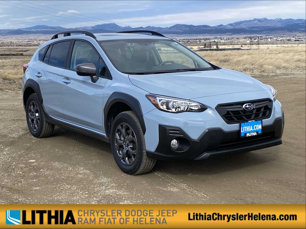 Lithia Chrysler Dodge Jeep RAM FIAT of Helena is pleased to offer this Cool-Gray Khaki 2023 Subaru Crosstrek Sport for purchase, this vehicle is well equipped with many features including: Moonroof & BSD w/RCTA & 8.0 Multimedia Plus Audio (Blind Spot Detection w/Rear Cross-Traffic Alert, Power Moonroof, and Radio: Subaru STARLINK 8.0 Multimedia Plus System), Exterior Parking Camera Rear, Heated Front Bucket Seats, STARLINK/Apple CarPlay/Android Auto, 3.70 Axle Ratio, 4-Wheel Disc Brakes, 6 Speakers, ABS brakes, Air Conditioning, Alloy wheels, AM/FM radio: SiriusXM, Anti-whiplash front head restraints, Auto-Dimming Exterior Mirror w/Approach Light, Auto-Dimming Mirror w/Compass & HomeLink, Automatic temperature control, Brake assist, Bumpers: body-color, CD player, Driver door bin, Driver vanity mirror, Dual front impact airbags, Dual front side impact airbags, Electronic Stability Control, Emergency communication system: STARLINK Safety and Security (Subscription Required), Four wheel independent suspension, Front anti-roll bar, Front Bucket Seats, Front Center Armrest, Front fog lights, Front reading lights, Fully automatic headlights, Heated door mirrors, Heated front seats, Illuminated entry, Knee airbag, Leather Shift Knob, Low tire pressure warning, Occupant sensing airbag, Outside temperature display, Overhead airbag, Overhead console, Panic alarm, Passenger door bin, Passenger vanity mirror, Power door mirrors, Power steering, Power windows, Radio data system, Radio: Subaru STARLINK 6.5 Multimedia Plus System, Rear anti-roll bar, Rear window defroster, Rear window wiper, Remote keyless entry, Security system, Speed control, Speed-sensing steering, Split folding rear seat, Spoiler, StarTex Upholstery, Steering wheel mounted audio controls, Tachometer, Telescoping steering wheel, Tilt steering wheel, Traction control, Trip computer, Turn signal indicator mirrors, Variably intermittent wipers, and Wheels: 17 x 7.0J Alum Alloy Dark Gray Met Finish. CARFAX One-Owner. Cool-Gray Khaki 2023 Subaru Crosstrek Sport Sport AWD Lineartronic CVT 2.5L 4-Cylinder DOHC 16V