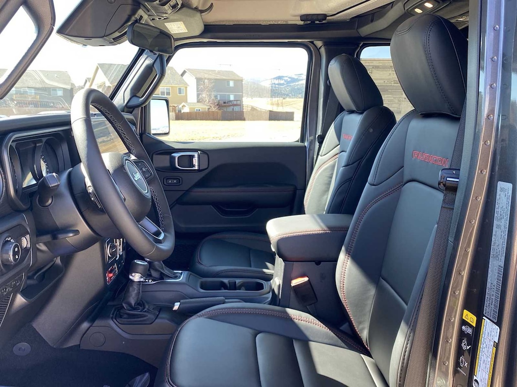 BLACK, POWER ADJUST NAPPA LEATHER SEATS Leather Wrapped Shift Knob, Premium Door Trim Panel, Power Adjust 8-Way Driver Seat, Power 4-Way Passenger Lumbar Adjust, Power Adjust 8-Way Front Passenger Seat, Full Length Floor Console Premium Armrest, Leather Wrapped Park Brake Handle, Power 4-Way Driver Lumbar Adjust, Rear Armrest w/Cupholder Seat, BODY COLOR 3-PIECE HARD TOP Freedom Panel Storage Bag, Rear Window Defroster, Rear Sliding Window, ALPINE PREMIUM AUDIO SYSTEM, MOPAR SPRAY IN BEDLINER, CONVENIENCE GROUP Heated Steering Wheel, Remote Start System, Universal Garage Door Opener, Heated Front Seats, 8-SPEED AUTOMATIC 850RE TRANSMISSION (STD), 3.6L V6 24V VVT UPG I ENGINE W/ESS (STD). Jeep Rubicon with Granite Crystal Metallic Clearcoat exterior and Black interior features a V6 Cylinder Engine with 285 HP at 6400 RPM*.