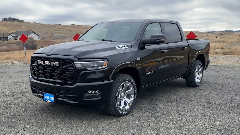 ENGINE: 5.7L V8 HEMI MDS VVT ETORQUE Active Noise Control System, Heavy Duty Engine Cooling, Passive Tuned Mass Damper, GVWR: 7,100 lbs, Dual Rear Exhaust w/Bright Tips, G/T Exhaust, 18 Aluminum Spare Wheel, BIG HORN LEVEL 2 EQUIPMENT GROUP SiriusXM Radio Service, Power Adjustable Pedals, Leather Wrapped Steering Wheel, 12 Touchscreen Display, Glove Box Lamp, Auto Power-Folding Mirrors, 115V Auxiliary Rear Power Outlet, Media Hub w/2 Charge Only USBs, Heated Front Seats, Security Alarm, Black Premium Power Mirrors, Premium Overhead Console, 9 Amplified Speakers w/Subwoofer, Disassociated Touchscreen Display, Body Color Fender Flares, Remote Tailgate Release, 115V Auxiliary Power Outlet, LED Dome Lamp w/On/Off Switch, Universal Garage Door Opener, 2nd Row In Floor Storage Bins, Sun Visors w/Illuminated Vanity Mirrors, LED Footwell Lighting, Rear Window Defroster, Rear View Auto Dim Mirror, Rear Power Sliding Window, GPS Navigation, Overhead LED Lamps, Wheels: 20 x 9 Aluminum Chrome Clad, MOPAR FRONT & REAR RUBBER FLOOR MATS, TRANSMISSION: 8-SPEED AUTOMATIC (8HP75). Ram Big Horn with Diamond Black Crystal Pearlcoat exterior and Black interior features a 8 Cylinder Engine with 395 HP at 5600 RPM*.