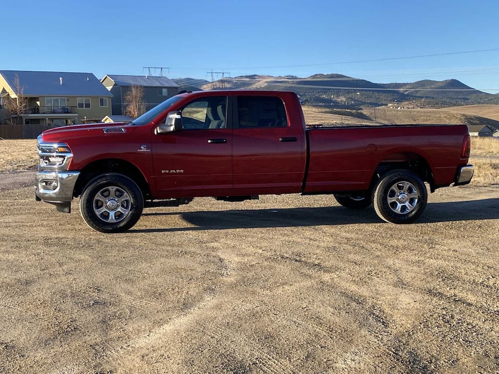 ENGINE: 6.7L I6 CUMMINS HO TURBO DIESEL Selective Catalytic Reduction (Urea), Dual 730 Amp Maintenance Free Batteries, Cummins Turbo Diesel Badge, Heavy Duty Engine Cooling, Diesel Exhaust Brake, Supplemental Heater, 3.42 Axle Ratio, Front Bumper Sight Shields, Capless Fuel Fill w/o Discriminator, GVWR: 11,040 lbs, BIG HORN LEVEL 2 EQUIPMENT GROUP Blind Spot & Cross Path Detection, LED Tail Lamps, Red Tail Lamp Bezels, Rear View Auto Dim Mirror, Power Adjustable Pedals, Rear Power Sliding Window, Rear Dome w/On/Off Switch Lamp, Glove Box Lamp, Auto Power-Folding Mirrors, Footwell Courtesy Lamp, 115V Auxiliary Rear Power Outlet, Media Hub w/2 Charge Only USBs, Anti-Spin Differential Rear Axle, Heated Front Seats, Heated Steering Wheel, Foam Bottle Insert (Door Trim Panel), Exterior 115V AC Outlet, Dampened Tailgate, Big Horn IP Badge, Forward & Reverse Utility Lights, Locking Lower Glove Box, Remote Start System, 400W Inverter, 9 Alpine Speakers w/Subwoofer, Power Heated Folding Telescopic Mirrors, Dual Wireless Charging Pad, Steering Wheel Mounted Audio Controls, Dual Glove Boxes, 115V Auxiliary, MOPAR FRONT & REAR RUBBER FLOOR MATS, TRANSMISSION: 8-SPEED TORQUEFLITE HD AUTOMATIC, BLACK, PREMIUM CLOTH BUCKET SEATS Bucket Seats, Power Adjust 8-Way Driver Seat, Folding Flat Load Floor Storage, Rear 60/40 Folding Seat, Front Seat Back Map Pockets, Power 2-Way Driver Lumbar Adjust, Full Length Upgraded Floor Console. Ram Big Horn with Molten Red Pearlcoat exterior and Black interior features a Straight 6 Cylinder Engine with 430 HP at 2800 RPM*.