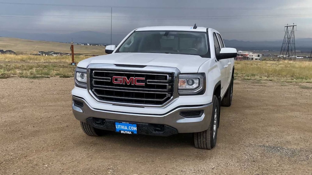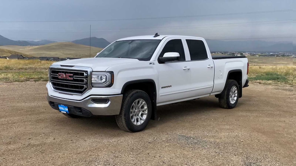 Lithia Chrysler Dodge Jeep RAM FIAT of Helena is pleased to offer this White 2018 GMC Sierra 1500 SLE for purchase, this vehicle is well equipped with many features including: 6-Speed Automatic Electronic with Overdrive, 4WD, Cloth, 150 Amp Alternator, 2-Speed Active Electronic AutoTrac Transfer Case, 3.08 Rear Axle Ratio, 4-Wheel Disc Brakes, 4.2 Diagonal Color Display Driver Info Center, 40/20/40 Front Split Bench Seat, 6 Speakers, 6-Speaker Audio System, 720 CCA/80 Amp-hr Maintenance Free HD Battery, ABS brakes, Air Conditioning, Alloy wheels, AM/FM radio: SiriusXM, Auxiliary External Transmission Oil Cooler, Body Color Bodyside Moldings, Body Color Door Handles, Body Color Power Adjustable Heated Outside Mirrors, Body-Color Mirror Caps, Bodyside moldings, Brake assist, Bumpers: chrome, CD player, Cloth Seat Trim, Color-Keyed Carpeting, Compass, Deep-Tinted Glass, Delay-off headlights, Driver & Front Passenger Illuminated Vanity Mirrors, Driver door bin, Driver vanity mirror, Dual front impact airbags, Dual front side impact airbags, Electronic Stability Control, Exterior Parking Camera Rear, EZ Lift & Lower Tailgate, Front anti-roll bar, Front Center Armrest w/Storage, Front Frame-Mounted Black Recovery Hooks, Front reading lights, Front wheel independent suspension, Fully automatic headlights, GMC 4G LTE, GMC Connected Access, HD Radio, Heated door mirrors, Heavy Duty Suspension, Heavy-Duty Rear Locking Differential, High-Intensity Discharge Headlights, Illuminated entry, Leather Wrapped Steering Wheel w/Cruise Controls, LED Cargo Box Lighting, Low tire pressure warning, Occupant sensing airbag, OnStar & GMC Connected Services Capable, Outside temperature display, Overhead airbag, Overhead console, Panic alarm, Passenger door bin, Passenger vanity mirror, Power door mirrors, Power steering, Power windows, Power Windows w/Driver Express Up & Down, Premium audio system: GMC Infotainment System, Radio data system, Radio: AM/FM/GMC Infotainment System, Rear 60/40 Folding Bench Seat (Folds Up), Rear reading lights, Rear seat center armrest, Rear step bumper, Rear Wheelhouse Liners, Remote Keyless Entry, Remote keyless entry, Rubberized-Vinyl Front Floor Mats, Rubberized-Vinyl Rear Floor Mats, Single Slot CD/MP3 Player, Single-Zone Air Conditioning, SiriusXM Satellite Radio, Speed control, Speed-sensing steering, Split folding rear seat, Steering Wheel Audio Controls, Steering wheel mounted audio controls, Tachometer, Tilt steering wheel, Traction control, Trip computer, Variably intermittent wipers, Voltmeter, and Wheels: 17 x 8 Bright Machined Aluminum. Clean CARFAX. White 2018 GMC Sierra 1500 SLE SLE 4WD 6-Speed Automatic Electronic with Overdrive EcoTec3 5.3L V8
