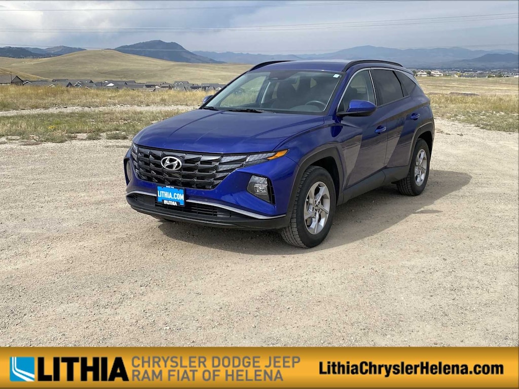 Lithia Chrysler Dodge Jeep RAM FIAT of Helena is pleased to offer this Intense Blue 2024 Hyundai Tucson SEL for purchase, this vehicle is well equipped with many features including: Option Group 01, AWD, 3.648 Axle Ratio, 4-Wheel Disc Brakes, 6 Speakers, ABS brakes, Air Conditioning, Alloy wheels, AM/FM radio: SiriusXM, Apple CarPlay & Android Auto, Auto High-beam Headlights, Automatic temperature control, Brake assist, Bumpers: body-color, Delay-off headlights, Driver door bin, Driver vanity mirror, Dual front impact airbags, Dual front side impact airbags, Electronic Stability Control, Emergency communication system: Blue Link Connected Car Service (3-year complimentary subscription), Exterior Parking Camera Rear, Four wheel independent suspension, Front anti-roll bar, Front Bucket Seats, Front Center Armrest, Front dual zone A/C, Front reading lights, Fully automatic headlights, Heated door mirrors, Heated Front Bucket Seats, Heated front seats, Illuminated entry, Low tire pressure warning, Occupant sensing airbag, Outside temperature display, Overhead airbag, Overhead console, Panic alarm, Passenger door bin, Passenger vanity mirror, Power door mirrors, Power driver seat, Power Liftgate, Power steering, Power windows, Radio data system, Radio: AM/FM/HD Audio System, Rear anti-roll bar, Rear seat center armrest, Rear side impact airbag, Rear window defroster, Rear window wiper, Remote keyless entry, Roof rack: rails only, Security system, Speed control, Split folding rear seat, Spoiler, Stain & Odor Resistant Cloth Seat Trim, Steering wheel mounted audio controls, Tachometer, Telescoping steering wheel, Tilt steering wheel, Traction control, Trip computer, Variably intermittent wipers, Wheels: 17 x 7.0J Alloy, and Wheels: 19 x 7.5J Machine-Face Finish Alloy. CARFAX One-Owner. Clean CARFAX. Intense Blue 2024 Hyundai Tucson SEL SEL AWD 8-Speed Automatic with SHIFTRONIC 2.5L I4 DGI DOHC 16V LEV3-SULEV30 187hp