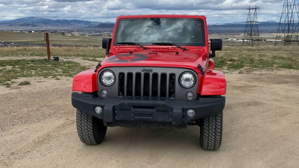 Lithia Chrysler Dodge Jeep RAM FIAT of Helena is pleased to offer this Firecracker Red Clearcoat 2018 Jeep Wrangler JK Sport for purchase, this vehicle is well equipped with many features including: Connectivity Group (Tire Pressure Monitoring Display, Uconnect Voice Command w/Bluetooth, and Vehicle Information Center), Freedom Edition Package, Freedom Package Decals, LED Lighting Group (LED Fog Lamps and LED Reflector Headlamps), Power Convenience Group (Auto-Dimming Mirror w/Reading Lamp, Front 1-Touch Down Power Windows, Power Heated Mirrors, Power Locks, Remote Keyless Entry, and Security Alarm), Quick Order Package 24F Freedom Edition (115V Auxiliary Power Outlet, Air Conditioning, BF Goodrich Brand Tires, Black Jeep Grille Badge, Black/Chrome Screws Fuel Filler Door, Body Color Fender Flares, Dana 44/226MM Rear Axle, Deep Tint Sunscreen Windows, Heavy Duty Suspension w/Gas Shocks, Iron Gray Interior Accents, Jeep Trail Rated Kit, Leather Seat w/Cloth (Sedoso Fabric), Mid Gloss Granite Crystal Grille, MOPAR Black Tail Lamp Guards, MOPAR Grab Handles, MOPAR HD Rear Bumper, MOPAR Slush Mats, MOPAR Winch-Capable HD Front Bumper, Oscar Mike Badge, Pantone Trail Rated Badge, Premium Black Sunrider Soft Top, R1234YF A/C Refrigerant, Silver Interior Accents, Sunrider Soft Top, and Wheels: 17 x 7.5 Low Gloss Granite Crystal), 1-Yr SiriusXM Radio Service, 16 x 7.0 Luxury Styled Steel Wheels, 4-Wheel Disc Brakes, 40GB Hard Drive w/28GB Available, 5-Year SiriusXM Travel Link Service, 6.5 Touchscreen Display, 8 Speakers, ABS brakes, Alpine 9-Speaker w/All Weather Subwoofer, AM/FM radio, Anti-Spin Differential Rear Axle, Audio Jack Input for Mobile Devices, Black 3-Piece Hard Top, Brake assist, CD player, Cloth Seats w/Adjustable Head Restraints, Compass, Delete Sunrider Soft Top, Driver door bin, Driver Height Adjuster Seat, Driver vanity mirror, Dual front impact airbags, Electronic Stability Control, Freedom Panel Storage Bag, Front anti-roll bar, Front Bucket Seats, Front Center Armrest w/Storage, Front fog lights, GPS Navigation, Integrated roll-over protection, Low tire pressure warning, Manufacturers Statement of Origin, Normal Duty Suspension, Occupant sensing airbag, Outside temperature display, Passenger door bin, Passenger vanity mirror, Power steering, Radio: 130, Radio: 430 Nav, Rear anti-roll bar, Rear Window Defroster, Rear Window Wiper/Washer, Remote USB Port, SiriusXM Travel Link, Speed control, Steering wheel mounted audio controls, Tachometer, Tilt steering wheel, Traction control, Trip computer, and Variably intermittent wipers. Recent Arrival! Clean CARFAX. Firecracker Red Clearcoat 2018 Jeep Wrangler JK Sport Sport 4WD 5-Speed Automatic 3.6L V6 24V VVT