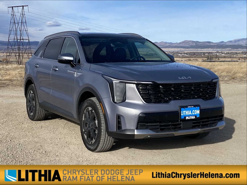 Lithia Chrysler Dodge Jeep RAM FIAT of Helena is pleased to offer this Everlasting Silver 2024 Kia Sorento S for purchase, this vehicle is well equipped with many features including: Panoramic Sunroof Package (LED Interior Lighting and Panoramic Power Sunroof w/Power Sunshade), AWD, Apple CarPlay & Android Auto, Exterior Parking Camera Rear, Navigation System, 3rd row seats: split-bench, 4-Wheel Disc Brakes, 4.081 Axle Ratio, 6 Speakers, ABS brakes, Air Conditioning, Alloy wheels, AM/FM radio: SiriusXM, Auto High-beam Headlights, Automatic temperature control, Brake assist, Bumpers: body-color, Cargo Net, Carpeted Floor Mats, Delay-off headlights, Driver door bin, Driver vanity mirror, Dual front impact airbags, Dual front side impact airbags, EC Mirror w/HomeLink, Electronic Stability Control, Emergency communication system: 911 Connect, Four wheel independent suspension, Front anti-roll bar, Front Bucket Seats, Front Center Armrest, Front dual zone A/C, Front fog lights, Front reading lights, Fully automatic headlights, Heated door mirrors, Heated Front Bucket Seats, Heated front seats, Illuminated entry, Knee airbag, Leather Shift Knob, Leather steering wheel, Low tire pressure warning, Occupant sensing airbag, Outside temperature display, Overhead airbag, Overhead console, Panic alarm, Passenger door bin, Passenger vanity mirror, Power door mirrors, Power driver seat, Power steering, Power windows, Radio data system, Radio: AM/FM Audio System, Rear anti-roll bar, Rear reading lights, Rear seat center armrest, Rear side impact airbag, Rear window defroster, Rear window wiper, Remote keyless entry, Security system, Smart Key w/ Push Button and Remote Start, Speed control, Speed-sensing steering, Split folding rear seat, Spoiler, Steering wheel mounted audio controls, SynTex Artificial Leather Seat Trim, Tachometer, Telescoping steering wheel, Tilt steering wheel, Traction control, Trip computer, Turn signal indicator mirrors, Variably intermittent wipers, and Wheels: 7.5J x 18 Alloy w/Machine Finish. CARFAX One-Owner. Clean CARFAX. Everlasting Silver 2024 Kia Sorento S S AWD 8-Speed Automatic 2.5L I4 DGI DOHC 16V LEV3-SULEV30 191hp