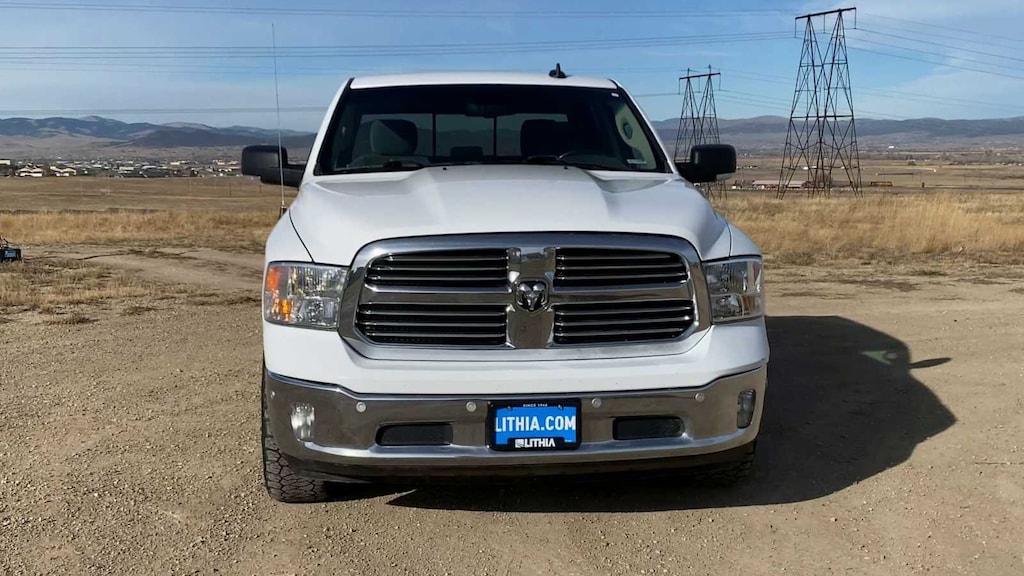 Lithia Chrysler Dodge Jeep RAM FIAT of Helena is pleased to offer this Bright White Clearcoat 2018 Ram 1500 Big Horn for purchase, this vehicle is well equipped with many features including: Big Horn Regional Package, Quick Order Package 27S Big Horn (1-Yr SiriusXM Guardian Trial, 115V Auxiliary Power Outlet, 40/20/40 Split Bench Seat, 8.4 Touchscreen Display, Apple CarPlay, Audio Jack Input for Mobile Devices, Auto-Dimming Exterior Mirrors, Auto-Dimming Rear-View Mirror, Big Horn Badge, Bright/Bright Billets Grille, Charge Only Remote USB Port, Dual Rear Exhaust w/Bright Tips, Electric Shift-On-Demand Transfer Case, Electroluminescent Instrument Cluster, Exterior Mirrors Courtesy Lamps, Exterior Mirrors w/Supplemental Signals, Folding Flat Load Floor Storage, Front Armrest w/3 Cupholders, Front Center Seat Cushion Storage, Front Fog Lamps, Glove Box Lamp, Google Android Auto, GPS Antenna Input, HD Radio, Integrated Voice Command w/Bluetooth, Leather Wrapped Steering Wheel, LED Bed Lighting, Media Hub (2 USB, AUX), Overhead Console w/Garage Door Opener, ParkSense Front/Rear Park Assist System, Power 10-Way Driver Seat, Power Heated Fold-Away Mirrors, Power Lumbar Adjust, Power-Folding Mirrors, Premium Cloth 40/20/40 Bench Seat, Radio: Uconnect 4C w/8.4 Display, Rear 60/40 Split Folding Seat, Rear Dome w/On/Off Switch Lamp, Rear Floor Mats, Rear Power Sliding Window, Remote Start System, Remote USB Port, Security Alarm, SiriusXM Satellite Radio, Steering Wheel Mounted Audio Controls, Storage Tray, Sun Visors w/Illuminated Vanity Mirrors, Universal Garage Door Opener, USB Host Flip, and Wheels: 20 x 8 Aluminum Chrome Clad), 3.21 Rear Axle Ratio, 32 Gallon Fuel Tank, 4-Wheel Disc Brakes, 6 Speakers, ABS brakes, Active Grille Shutters, Air Conditioning, Alloy wheels, AM/FM radio: SiriusXM, Black Exterior Mirrors, Brake assist, Bumpers: chrome, Center Hub, Class IV Receiver Hitch (DISC), Compass, Delay-off headlights, Driver door bin, Dual front impact airbags, Dual front side impact airbags, Electronic Shift, Electronic Stability Control, Engine Block Heater, Exterior Mirrors w/Heating Element, Front anti-roll bar, Front Center Armrest w/Storage, Front reading lights, Front wheel independent suspension, Fully automatic headlights, Heated door mirrors, Illuminated entry, Low tire pressure warning, Manufacturers Statement of Origin, Occupant sensing airbag, Outside temperature display, Overhead airbag, Overhead console, Panic alarm, ParkView Rear Back-Up Camera, Passenger door bin, Passenger vanity mirror, Power door mirrors, Power steering, Power windows, Radio data system, Rear anti-roll bar, Rear seat center armrest, Rear step bumper, Remote keyless entry, Speed control, Tachometer, Tilt steering wheel, Tip Start, Traction control, Trip computer, Variably intermittent wipers, Voltmeter, and Wheel to Wheel Side Steps. Clean CARFAX. Bright White Clearcoat 2018 Ram 1500 Big Horn Big Horn 4WD 8-Speed Automatic HEMI 5.7L V8 Multi Displacement VVT