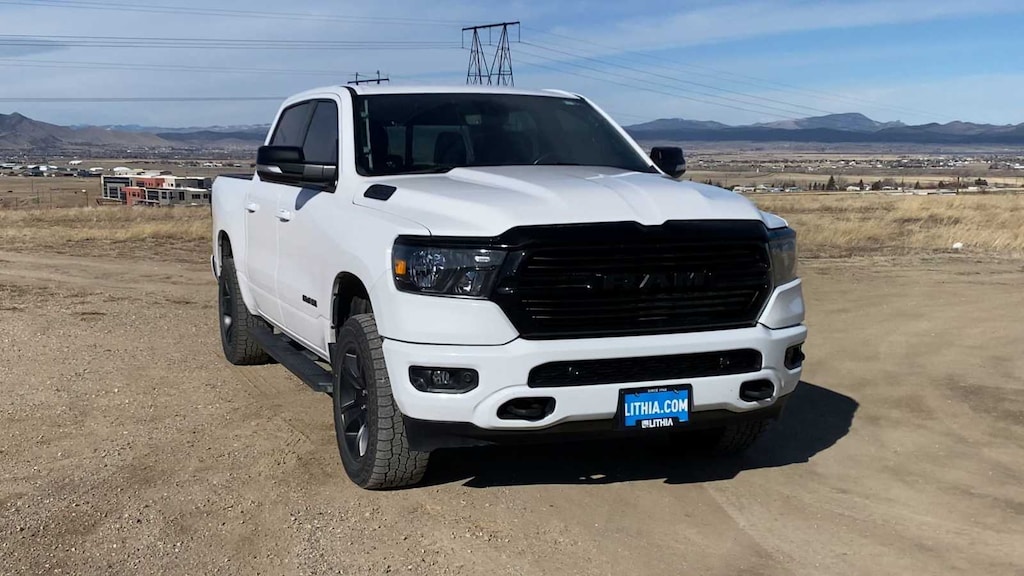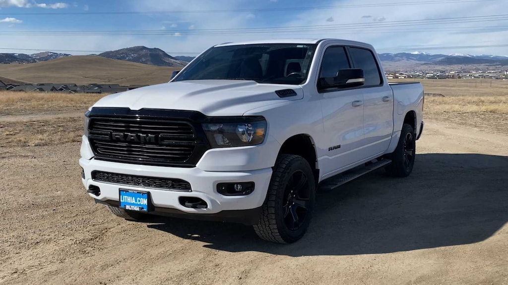 Lithia Chrysler Dodge Jeep RAM FIAT of Helena is pleased to offer this Bright White Clearcoat 2021 Ram 1500 Big Horn/Lone Star for purchase, this vehicle is well equipped with many features including: Big Horn Level 2 Equipment Group (115V Auxiliary Power Outlet, 115V Auxiliary Rear Power Outlet, 2nd Row In Floor Storage Bins, 400W Inverter, Air Conditioning ATC w/Dual Zone Control, Auto-Dimming Exterior Driver Mirror, Auto-Dimming Rear-View Mirror, Black Premium Power Mirrors, Class IV Receiver Hitch, Cluster 7.0 TFT Color Display, Exterior Mirrors Courtesy Lamps, Exterior Mirrors w/Supplemental Signals, Foam Bottle Insert (Door Trim Panel), For More Info, Call 800-643-2112, Glove Box Lamp, Heated Front Seats, Heated Steering Wheel, Media Hub w/2 Charge Only USBs, ParkSense Front/Rear Park Assist w/Stop, Power 4-Way Driver Lumbar Adjust, Power 8-Way Driver Seat, Power Adjustable Pedals, Power-Folding Mirrors, Rear Dome w/On/Off Switch Lamp, Rear Power Sliding Window, Rear Window Defroster, Security Alarm, SiriusXM Radio Service, Sun Visors w/Illuminated Vanity Mirrors, and Universal Garage Door Opener), Night Edition (3 Rear Seat Head Restraints, 4 Way Front Headrests, Accent Color Premium Power Mirrors, Anti-Spin Differential Rear Axle, Black Exterior Truck Badging, Black Headlamp Bezels, Black Interior Accents, Black Painted Exterior Mirrors Caps, Body Color Front Bumper, Body Color Rear Bumper w/Step Pads, Bucket Seats, Center Console Parts Module, Deluxe Cloth Bucket Seats, Dual Exhaust w/Black Tips, Exterior Mirrors w/Memory, Front Seat Back Map Pockets, Full Length Floor Console, Manual Adjust 4-Way Front Passenger Seat, Rear 60/40 Folding Seat, and Wheels: 20 x 9.0 Premium Paint/Polished), Protection Group (Tow Hooks), Quick Order Package 27Z Big Horn (Big Horn Badge), 1-Yr SiriusXM Guardian Trial, 4G LTE Wi-Fi Hot Spot, 5-Year SiriusXM Traffic Service, 5-Year SiriusXM Travel Link Service, 8.4 Touchscreen Display, Apple CarPlay, Blind Spot & Cross Path Detection, Disassociated Touchscreen Display, For Details, Visit DriveUconnect.com, Google Android Auto, GPS Antenna Input, GPS Navigation, HD Radio, Integrated Center Stack Radio, Integrated Voice Command w/Bluetooth, LED Taillamps, ParkView Rear Back-Up Camera, Radio: Uconnect 4C Nav w/8.4 Display, SiriusXM Satellite Radio, SiriusXM Traffic Plus, SiriusXM Travel Link, USB Host Flip, 33 Gallon Fuel Tank, 4-Wheel Disc Brakes, 40/20/40 Split Bench Seat, 48V Belt Starter Generator, 6 Speakers, 9 Amplified Speakers w/Subwoofer, ABS brakes, Air Conditioning, Alloy wheels, AM/FM radio, Black Exterior Mirrors, Brake assist, Bumpers: chrome, Cloth Bench Seat, Compass, Delay-off headlights, Driver door bin, Dual front impact airbags, Dual front side impact airbags, Electronic Stability Control, Front anti-roll bar, Front Center Armrest w/Storage, Front fog lights, Front License Plate Bracket, Front reading lights, Front wheel independent suspension, Fully automatic headlights, Heated door mirrors, Illuminated entry, Leather steering wheel, Low tire pressure warning, Manufacturers Statement of Origin, MOPAR Front & Rear Rubber Floor Mats, Occupant sensing airbag, Outside temperature display, Overhead airbag, Overhead console, Panic alarm, Passenger door bin, Passenger vanity mirror, Power door mirrors, Power steering, Power windows, Radio data system, Radio: Uconnect 3 w/5 Display, Rear anti-roll bar, Rear seat center armrest, Rear step bumper, Rear Underseat Compartment Storage, Rear Wheelhouse Liners, Remote keyless entry, Remote Start System, Speed control, Split folding rear seat, Steering wheel mounted audio controls, Tachometer, Telescoping steering wheel, Tilt steering wheel, Traction control, Trailer Brake Control, Trip computer, Variably intermittent wipers, Voltmeter, and Wheels: 18 x 8 Cast-Aluminum PainteD. Bright White Clearcoat 2021 Ram 1500 Big Horn/Lone Star Big Horn/Lone Star 4WD 8-Speed Automatic HEMI 5.7L V8 Multi Displacement VVT