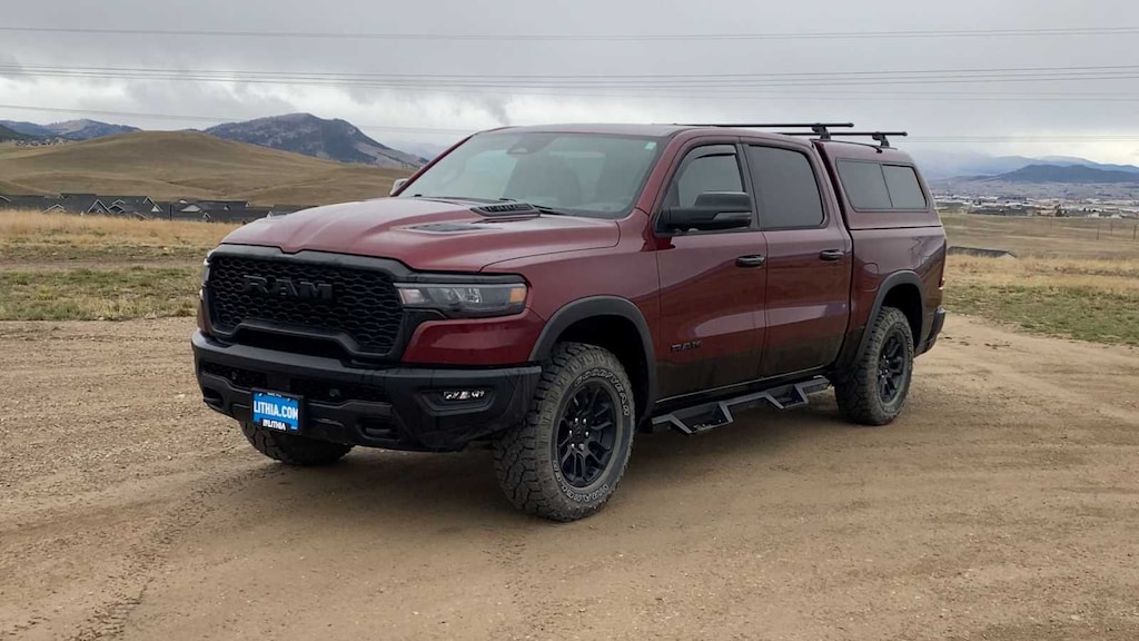 Lithia Chrysler Dodge Jeep RAM FIAT of Helena is pleased to offer this Delmonico Red Pearlcoat 2025 Ram 1500 Rebel for purchase, this vehicle is well equipped with many features including: G/T Package (4 Way Front Headrests, Bucket Seats, Driver Seat Memory, Floor Console, Front Seat Back Map Pockets, G/T Decal, GT Interior Theme, Heated Front Seats, Heated Second Row Seats, Heated Steering Wheel, Leather Wrapped Shift Knob, Leather-Wrapped Steering Wheel, Leather/Vinyl Bucket Seats, MOPAR Bright Pedal Kit, Passive Cold End Exhaust, Performance Pages, Power 4-Way Driver Lumbar Adjust, Power 4-Way Passenger Lumbar Adjust, Power Adjust 8-Way Driver Seat, Power Adjust 8-Way Front Passenger Seat, Rear 60/40 Folding Split Recline Seat, Steering Wheel Mounted Shift Control, Under Seat Lighting, and Ventilated Front Seats), Quick Order Package 21W Rebel, Rebel Level 2 Equipment Group (115V Auxiliary Rear Power Outlet, 2-Door Passive Entry, Front Door Locks, 4G LTE Wi-Fi Hot Spot, Accent Color Door Handles, Accent Color Premium Power Mirrors, Accent Color Tailgate Handle, Apple CarPlay, Auto Power-Folding Mirrors, Auto-Dimming Exterior Driver Mirror, Black Painted Exterior Mirrors Caps, Connected Travel & Traffic Services, Connectivity - US/Canada, Convex Wide-Angle Exterior Mirror Insert, Dual Wireless Charging Pad, Exterior Mirrors Approach Lamps, Exterior Mirrors Courtesy Lamps, Exterior Mirrors w/Heating Element, Exterior Mirrors w/Memory, Exterior Mirrors w/Supplemental Signals, Front Passenger Interactive Display, Google Android Auto, GPS Antenna Input, GPS Navigation, harman/kardon 19 Speaker Premium Sound, HD Radio, Integrated Voice Command w/Bluetooth, Media Hub w/2 Charge Only USBs, Off-Road Information Pages, Power Adjustable Pedals w/Memory, Power Tailgate, Proximity Approach/Departure Lamps, Radio: Uconnect 5 Nav w/14.4 Display, Radio/Driver Seat/Mirrors/Pedals Memory, Rain Sensitive Windshield Wipers, Rear Window Defroster, Security Alarm, SiriusXM w/360L, Smartphone As A Key Capable, and USB Host Flip), 10 Speakers, 3.92 Rear Axle Ratio, 4-Wheel Disc Brakes, ABS brakes, Air Conditioning, Alloy wheels, AM/FM radio: SiriusXM with 360L, Apple CarPlay/Android Auto, Auto High-beam Headlights, Auto-dimming Rear-View mirror, Automatic temperature control, Brake assist, Cloth/Vinyl Bucket Seats, Compass, Delay-off headlights, Driver door bin, Driver vanity mirror, Dual front impact airbags, Dual front side impact airbags, Electronic Stability Control, Engine Block Heater, Front anti-roll bar, Front Bucket Seats, Front Center Armrest w/Storage, Front dual zone A/C, Front fog lights, Front License Plate Bracket, Front reading lights, Front wheel independent suspension, Full Length Upgraded Floor Console, Fully automatic headlights, Garage door transmitter, Heated door mirrors, Heated front seats, Heated steering wheel, Illuminated entry, Leather steering wheel, Low tire pressure warning, Manual Folding Exterior Mirrors, Manufacturers Statement of Origin, Navigation System, Occupant sensing airbag, Outside temperature display, Overhead airbag, Overhead console, Panic alarm, ParkView Rear Back-Up Camera, Passenger door bin, Passenger vanity mirror, Power door mirrors, Power driver seat, Power steering, Power windows, Radio data system, Radio: Uconnect 5 Nav w/12.0 Display, Rear 60/40 Folding Seat, Rear anti-roll bar, Rear seat center armrest, Rear step bumper, Remote keyless entry, Speed control, Split folding rear seat, Steering wheel mounted audio controls, Tachometer, Telescoping steering wheel, Tilt steering wheel, Traction control, Trailer Brake Control, Trip computer, Variably intermittent wipers, Voltmeter, and Wheels: 18 x 8.0 Painted Mid-Gloss Black. CARFAX One-Owner. Clean CARFAX. Delmonico Red Pearlcoat 2025 Ram 1500 Rebel Rebel 4WD 8-Speed Automatic 3.0L I6