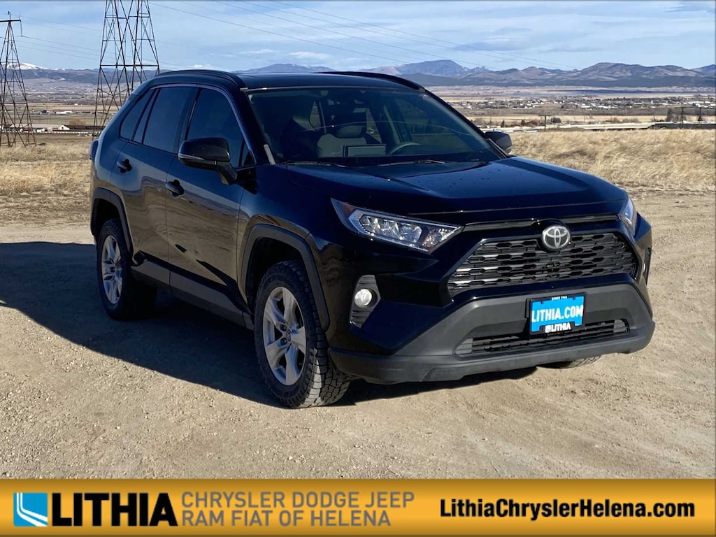 Lithia Chrysler Dodge Jeep RAM FIAT of Helena is pleased to offer this Midnight Black Metallic 2019 Toyota RAV4 XLE for purchase, this vehicle is well equipped with many features including: AWD, Cloth, Apple CarPlay, 17 x 7.0J Alloy Wheels, 4-Wheel Disc Brakes, 6 Speakers, ABS brakes, Air Conditioning, Alloy wheels, AM/FM radio, Auto High-beam Headlights, Automatic temperature control, Axle Ratio: 3.177, Brake assist, Bumpers: body-color, Delay-off headlights, Driver door bin, Driver vanity mirror, Dual front impact airbags, Dual front side impact airbags, Electronic Stability Control, Emergency communication system: Entune Safety Connect, Exterior Parking Camera Rear, Fabric Seat Trim, Four wheel independent suspension, Front anti-roll bar, Front Bucket Seats, Front Center Armrest, Front dual zone A/C, Front fog lights, Front reading lights, Fully automatic headlights, Heated door mirrors, Illuminated entry, Knee airbag, Low tire pressure warning, Occupant sensing airbag, Outside temperature display, Overhead airbag, Overhead console, Panic alarm, Passenger door bin, Passenger vanity mirror, Power door mirrors, Power moonroof, Power steering, Power windows, Radio data system, Radio: Entune 3.0 Audio, Rear anti-roll bar, Rear seat center armrest, Rear window defroster, Rear window wiper, Remote keyless entry, Roof rack: rails only, Speed control, Speed-sensing steering, Split folding rear seat, Spoiler, Steering wheel mounted audio controls, Tachometer, Telescoping steering wheel, Tilt steering wheel, Traction control, Trip computer, Turn signal indicator mirrors, and Variably intermittent wipers. Recent Arrival! Clean CARFAX. Midnight Black Metallic 2019 Toyota RAV4 XLE XLE AWD 8-Speed Automatic 2.5L 4-Cylinder DOHC Dual VVT-i