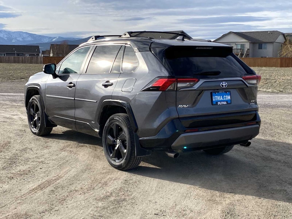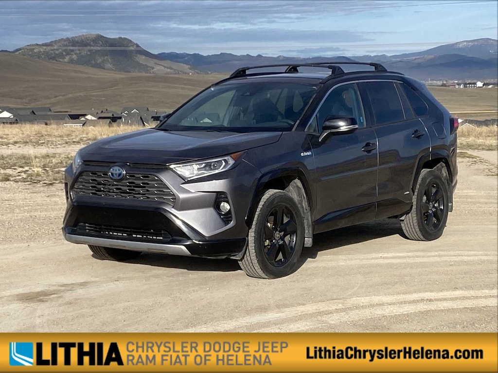 Lithia Chrysler Dodge Jeep RAM FIAT of Helena is pleased to offer this Midnight Black Metallic 2021 Toyota RAV4 Hybrid XSE for purchase, this vehicle is well equipped with many features including: Convenience Package (3 Spoke Leather Steering Wheel), XSE Package (Anti-Theft System, Front Door Smart Key System w/Push Button Start, Front Fog & Driving Lamp, and Front Seat Heating), 2.5L 4-Cylinder, 4-Wheel Disc Brakes, 6 Speakers, ABS brakes, Air Conditioning, Alloy wheels, AM/FM radio: SiriusXM, Apple CarPlay/Android Auto, Auto High-beam Headlights, Auto-dimming Rear-View mirror, Automatic temperature control, Axle Ratio: TBD, Brake assist, Bumpers: body-color, Delay-off headlights, Driver door bin, Driver vanity mirror, Dual front impact airbags, Dual front side impact airbags, Electronic Stability Control, Emergency communication system: Safety Connect with 1-year trial, Four wheel independent suspension, Front anti-roll bar, Front Bucket Seats, Front Center Armrest, Front dual zone A/C, Front fog lights, Front reading lights, Fully automatic headlights, Garage door transmitter: HomeLink, Heated door mirrors, Heated Front Seats, Heated front seats, Illuminated entry, Knee airbag, Lane Departure Warning System, Leather Shift Knob, Low tire pressure warning, Occupant sensing airbag, Outside temperature display, Overhead airbag, Overhead console, Panic alarm, Passenger door bin, Passenger vanity mirror, Power door mirrors, Power driver seat, Power Liftgate, Power moonroof, Power steering, Power windows, Radio data system, Radio: Audio Plus, Rear anti-roll bar, Rear seat center armrest, Rear window defroster, Rear window wiper, Remote keyless entry, Roof rack: rails only, Security system, SofTex Seat Trim (EC), Speed control, Speed-sensing steering, Split folding rear seat, Spoiler, Steering wheel mounted audio controls, Telescoping steering wheel, Tilt steering wheel, Traction control, Trip computer, Turn signal indicator mirrors, Variably intermittent wipers, and Wheels: 18 x 7.0J Black-Painted Aluminum Alloy. New Price! Midnight Black Metallic 2021 Toyota RAV4 Hybrid XSE XSE AWD eCVT 2.5L 4-Cylinder